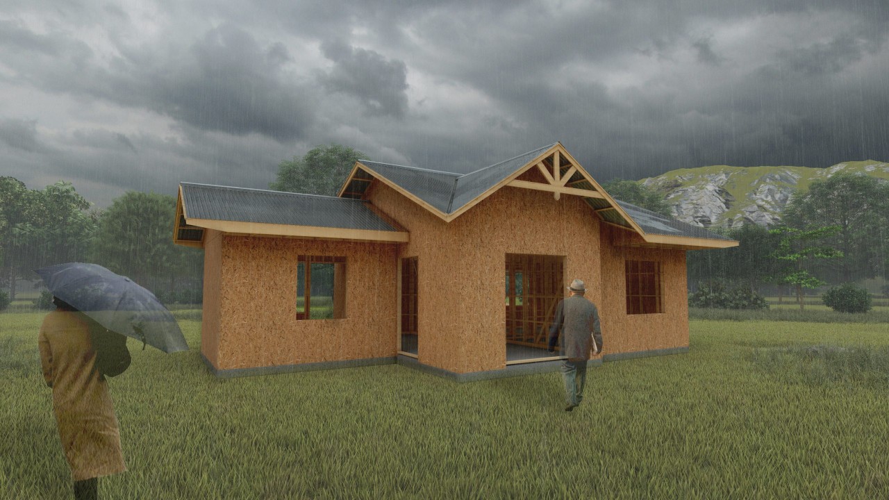 Modelo dinámico, funcional de 6 aguas, con opción de vigas a la vista en la sala de estar. Se destaca por su sencillez y sobriedad.